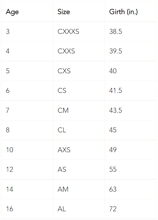 Ever since we first started in 2012, the pattern we used to base our leotards off of went by age. We stuck with that and determined what the equivalent sizing was to name brands. We find it easier for gymnasts & parents to determine and remember their size. Plus, we're unique!